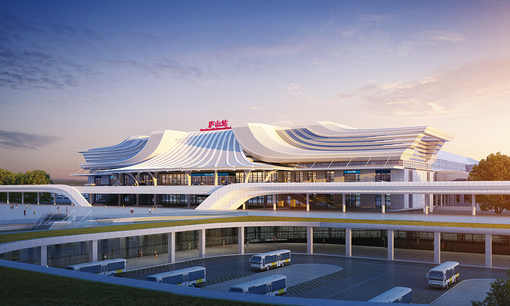 庐山站位于江西省九江市柴桑区沙河街镇,站房建筑面积6万平方米,生产生活房屋总建筑面积1.9万平方米,站场规模为8台25线。项目建成后,将成为承载城市商业、文化、娱乐等复合功能在内的立体性、综合性交通枢纽。