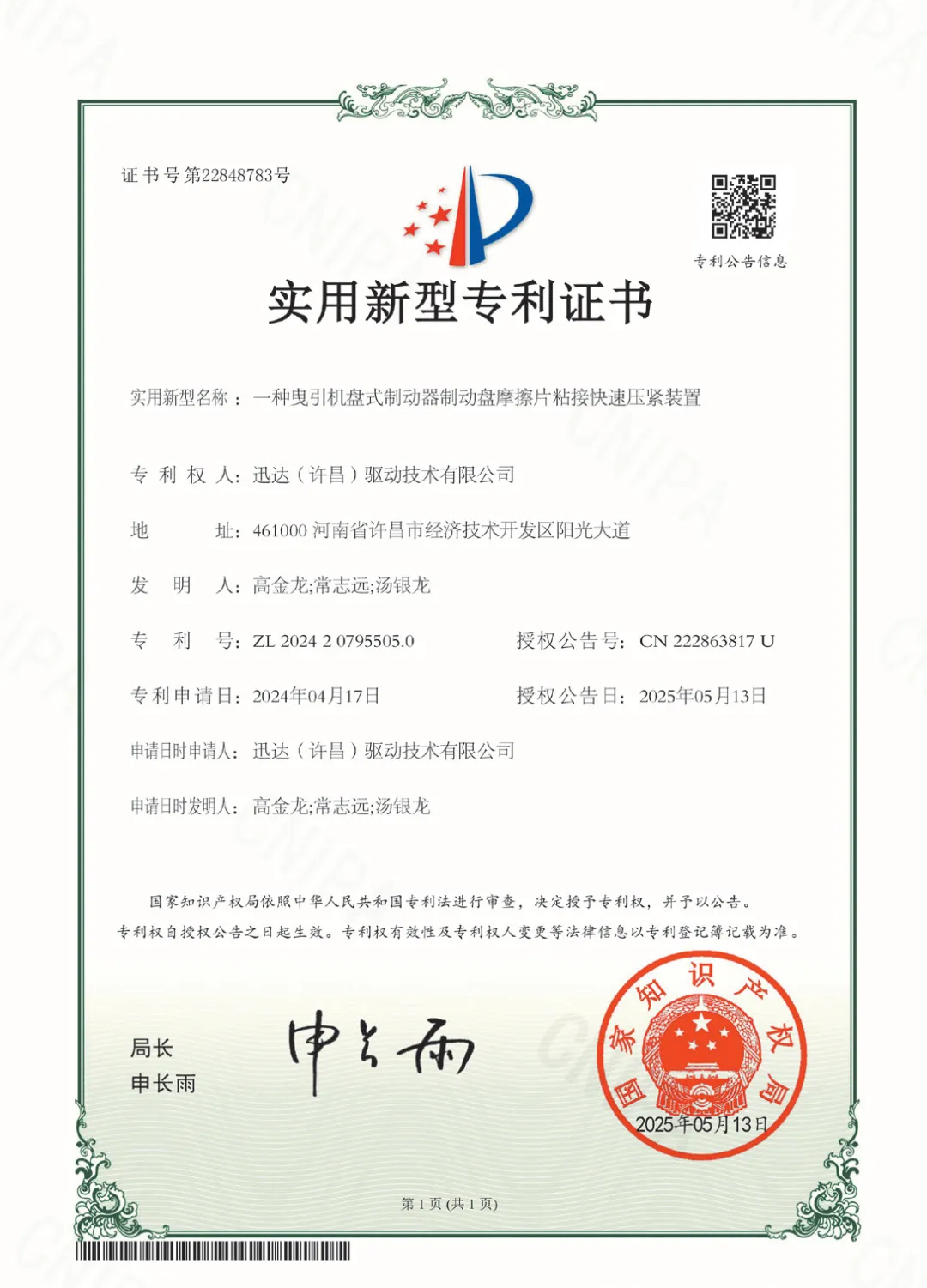 在科技飞速发展的当下,电梯行业的技术创新日新月异。5月中旬,西继迅达电梯成功斩获两项实用新型专利,分别是迅达驱动自主研发的“一种曳引机盘式制动器制动盘摩擦片粘接快速压紧装置”,以及奥仕达公司自主研发的“一种丝杆三联动家用梯垂直提升厅门”。两项专利从不同维度彰显了西继迅达在电梯技术研发上的深厚实力与多元创新。
